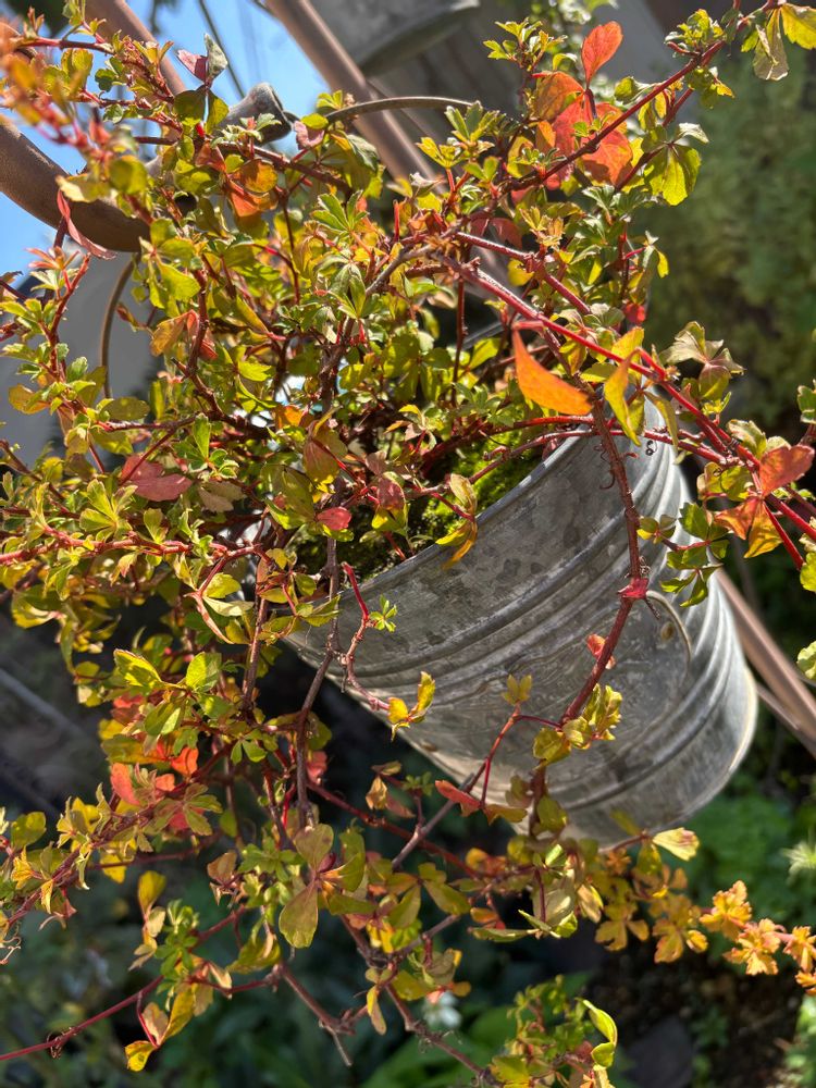 ブリキ鉢、錆びて底抜けるから鉢カバーにしてます😄