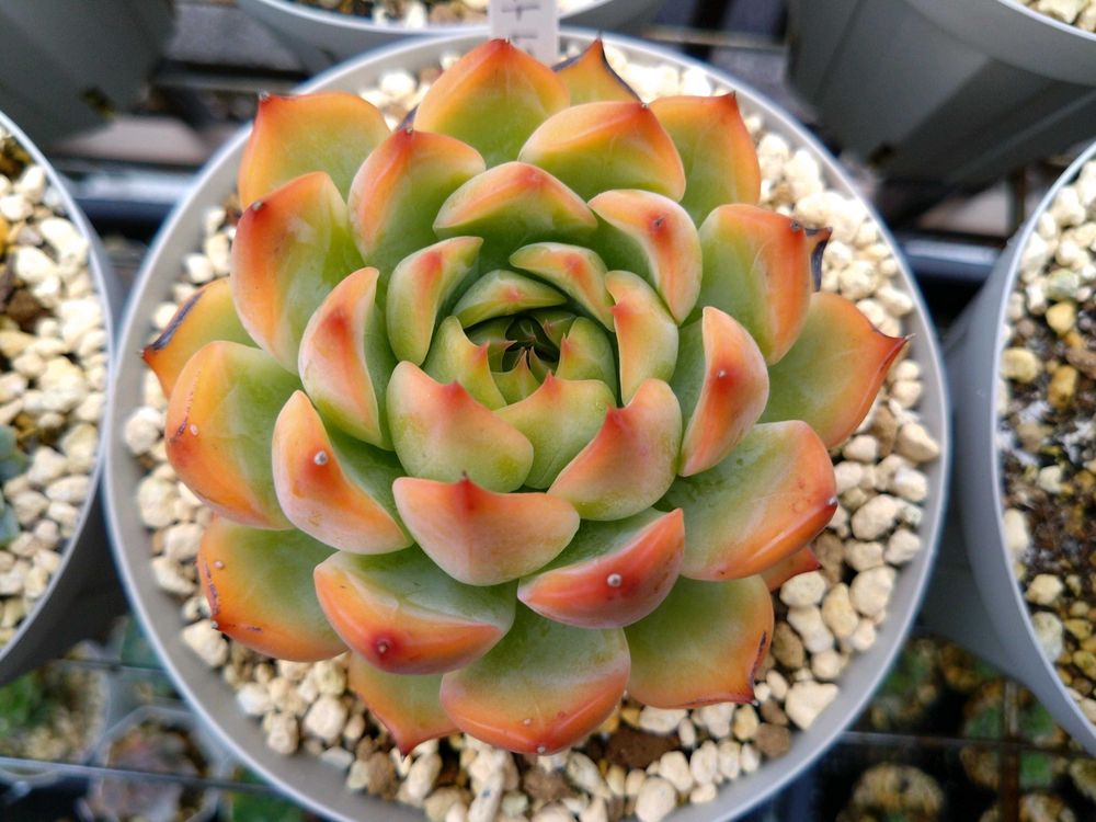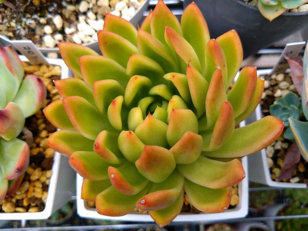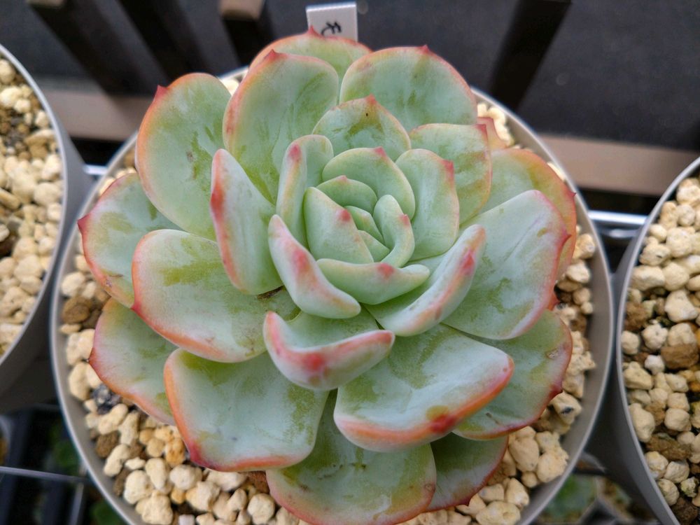 いや、まさに可愛い系エケベリアの王道じゃないですか。誰もがこういうのを目指すのでは😁今ちょっとベランダがエケとハオとパキポと実生でスペース奪い合い状態なんです💦ちょっと交通整理してからまたお願いします。an3のところは他にも好物がいっぱいいるし😁😁😁