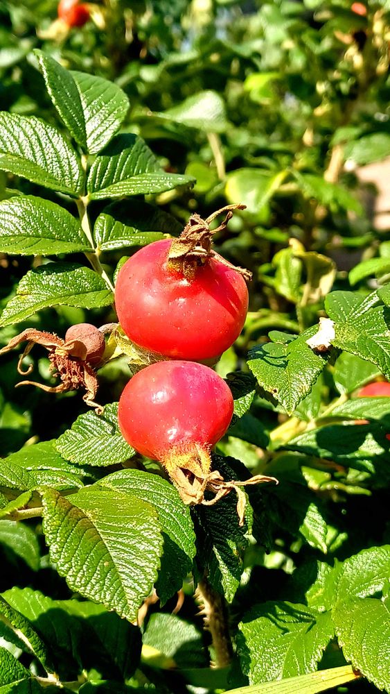 ハマナスの実がまん丸でピカピカ✨🥹💖