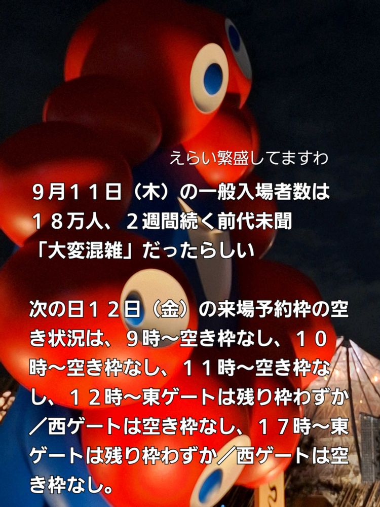 なるのね😀昨日行ってきた(若い)人の話ではパビリオンどこも入れず大屋根リングも人が多すぎで上がらずって聞きましたよ