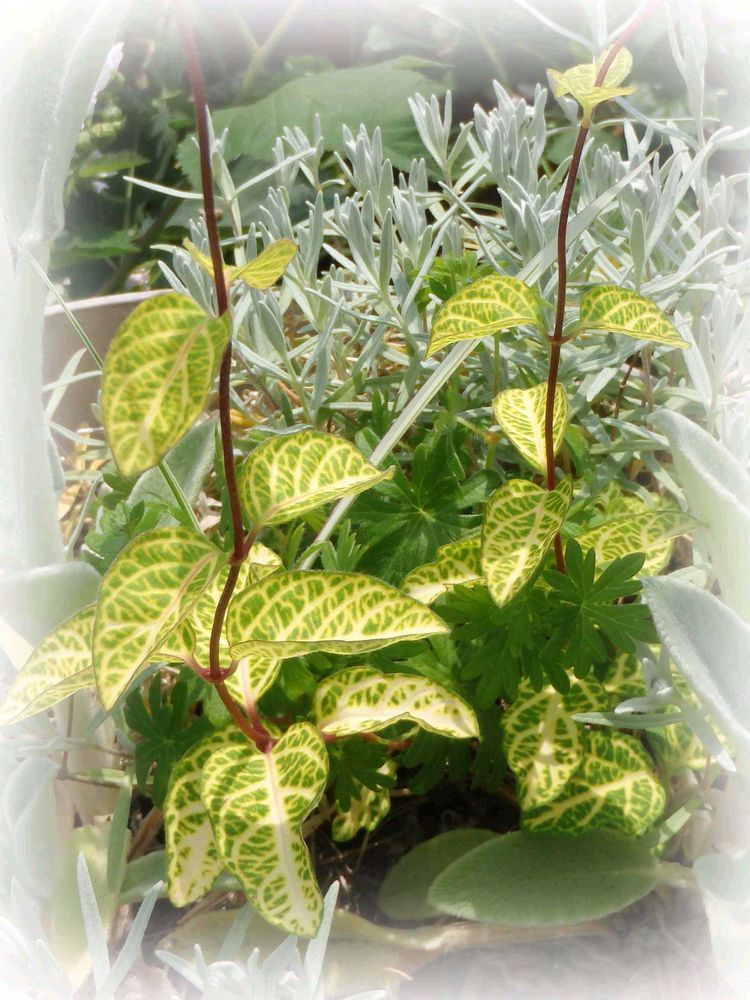 ラムズイヤーとセラスチウムの鉢から勝手に出てきたツル植物。