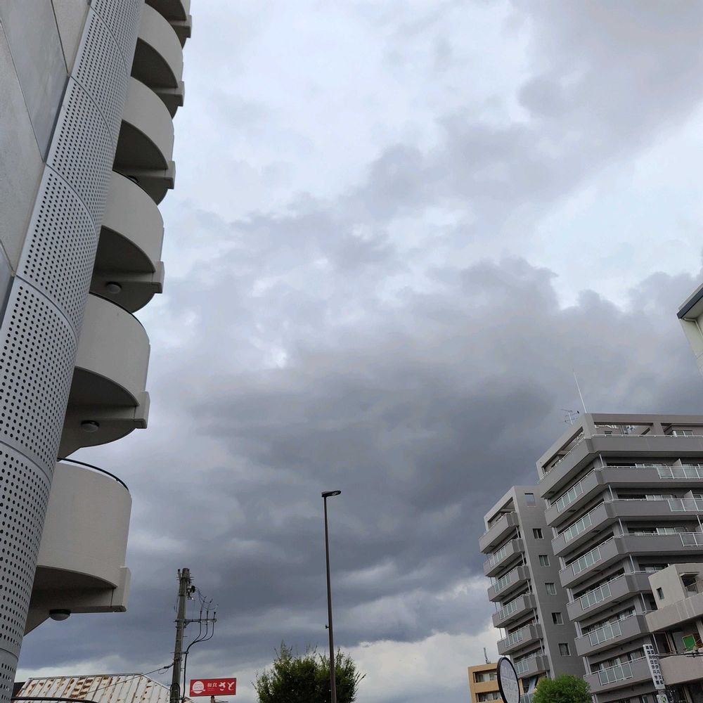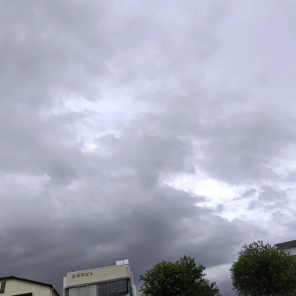 今にも降りそうな雲が…
