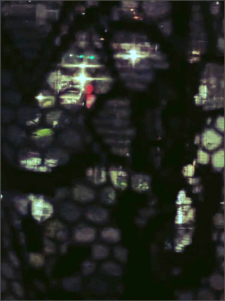 カフェカーテン越しの街灯り、街灯の赤、