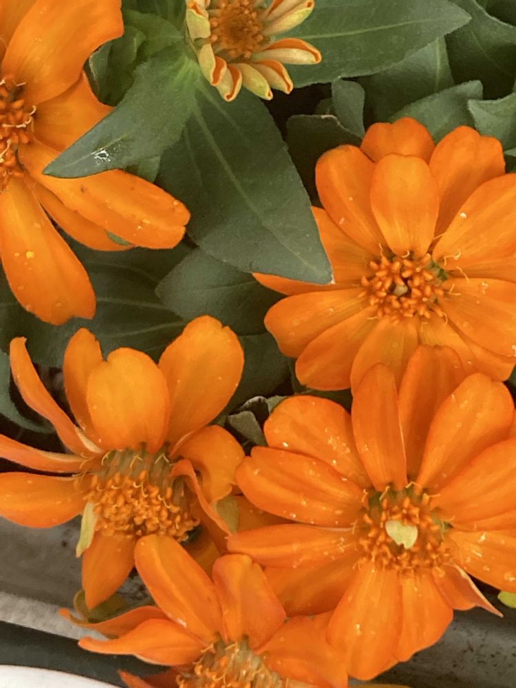 フウリンブッソウゲ🧡綺麗✨ピンクグレープフルーツを思うようなかわいい色ですね🥭ポーチュラカもジニアも綺麗です。そしてもうガーデンマムの次期ですかね☺️この花はぽんぼんとまあるく可愛らしく咲いてほんとかわいいお花です🌼🌼🌼