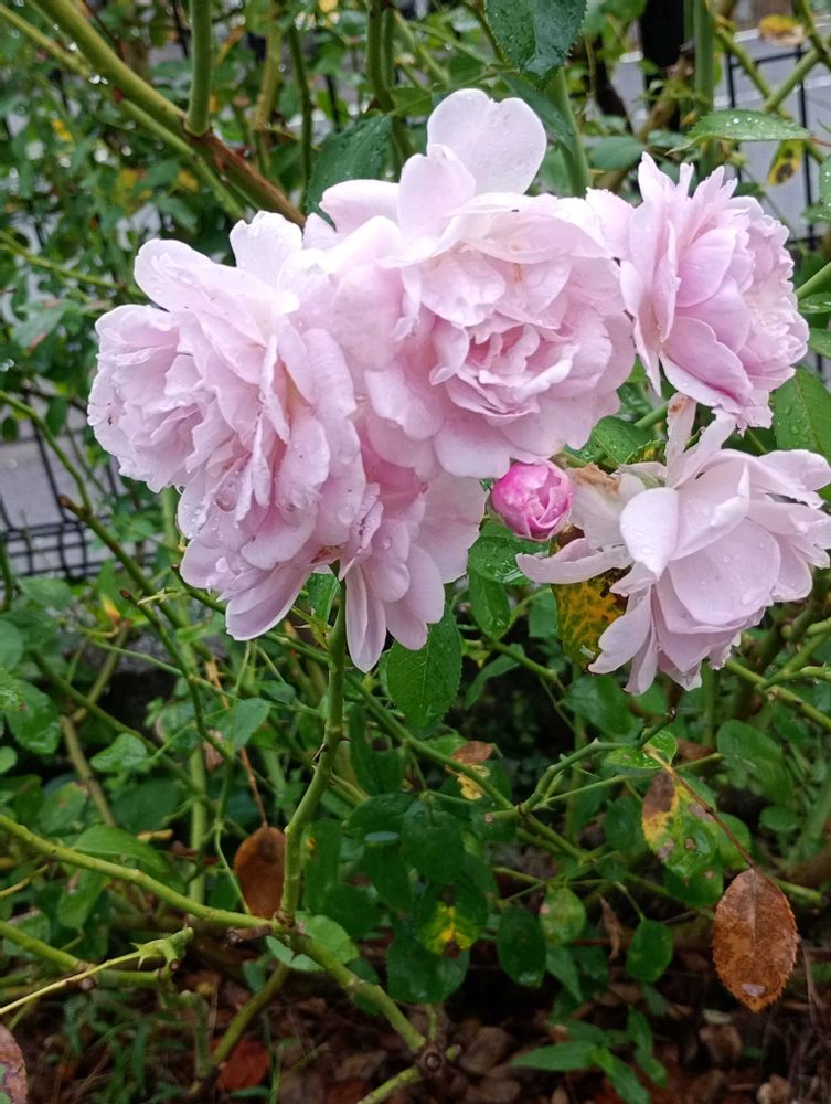 シュラブだからとお盆明けに夏剪定したレイニーブルーがもう咲き始めちゃいました😂