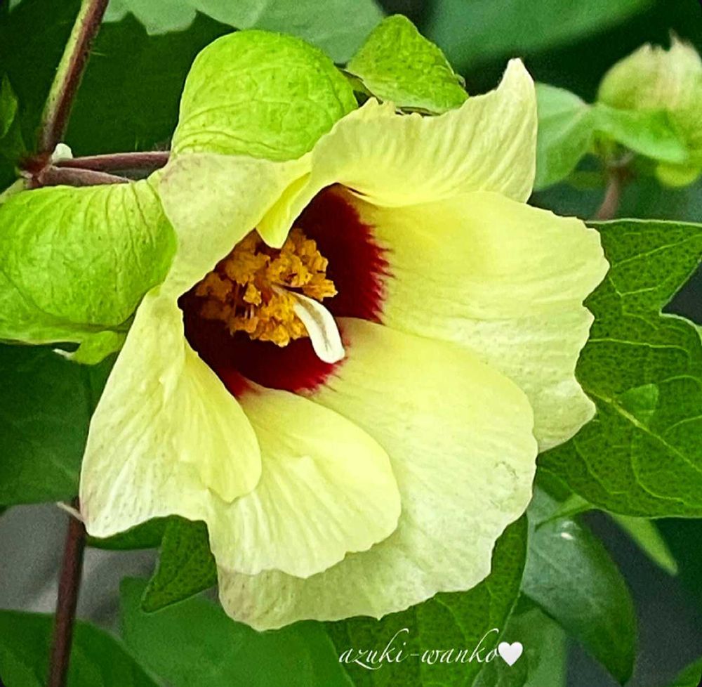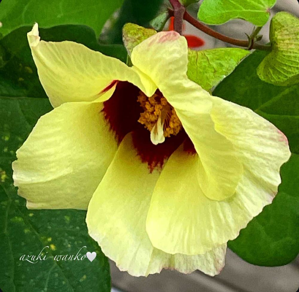 花色は、色々ありますが、オクラの花にそっくりなクリーム色に中心が赤い素敵な花をお楽しみください。