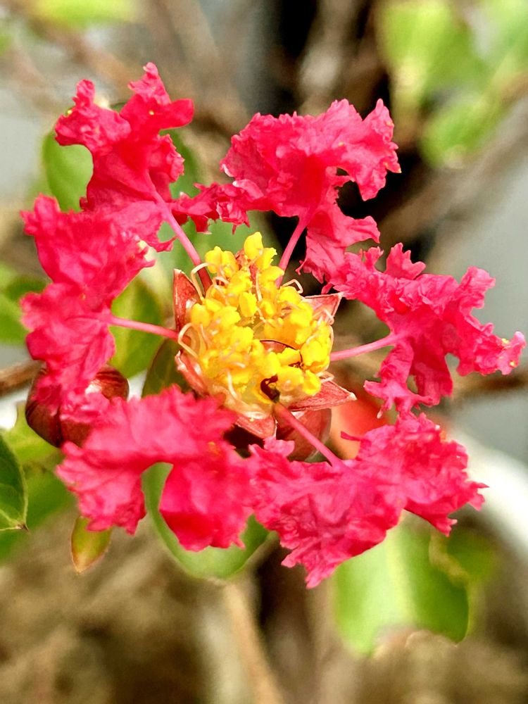 サルスベリのおしべは、黄色🟡で短いのと紫🟣で長いのが6本あると知ってから、長いおしべを観察するようになったんです👀