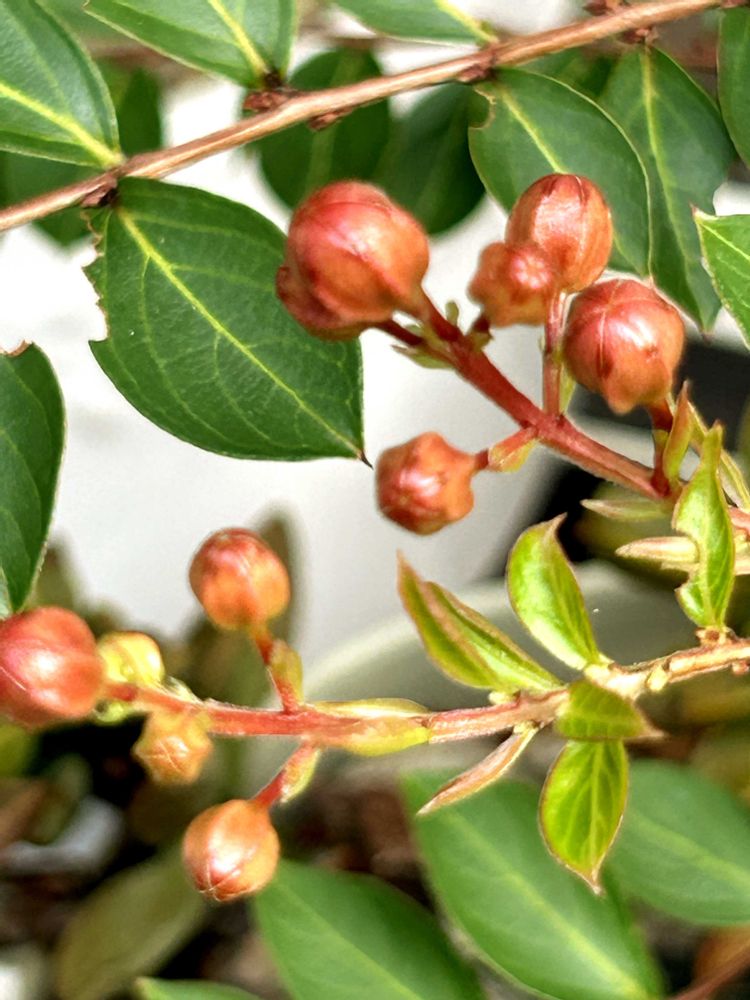 この蕾がいくつか弾けて、こんもりしたサルスベリになるのですね🥰