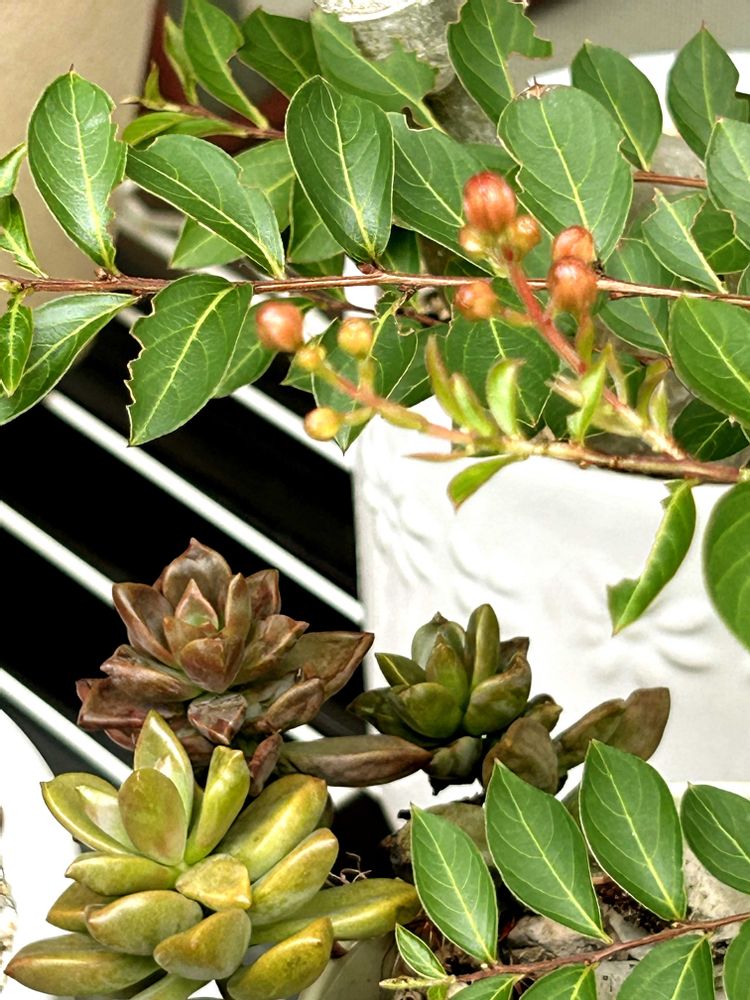 このサルスベリ、買った時は葉っぱが見えないくらい花が咲いていて、小さな鉢だったので、思わず買ったのですが、その後2、3年は咲かず、やっと今年咲いてくれました🤗