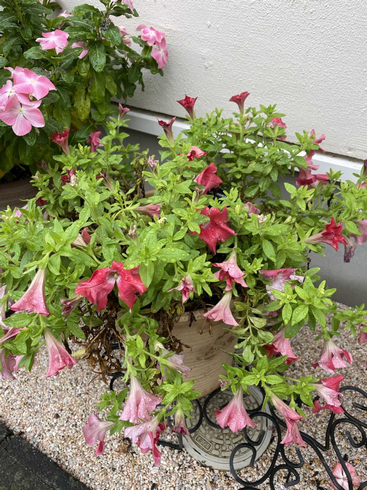 未明の大雨☔️で花たちが心配でした🥺 今朝見たらペチュニア達はみんなこんな状態💦 まだ雨が続きそうです( ・᷄ὢ・᷅ )マダ
