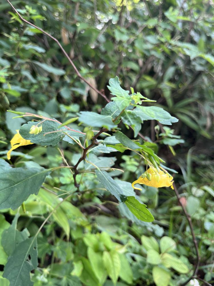 💛ツリフネソウは葉っぱの下に隠れるように咲いてますが、シッポ(?)がカールしていて可愛いんですよね🤭