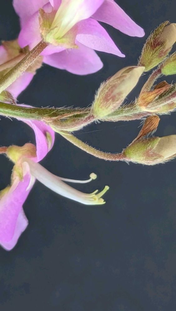 昨日投稿したヌスビトハギと違って、林より道端で出会うことが多く、大きく色も濃くて、旗弁の基部に黄緑色の2つの斑👀萎むと青くなるね🩵