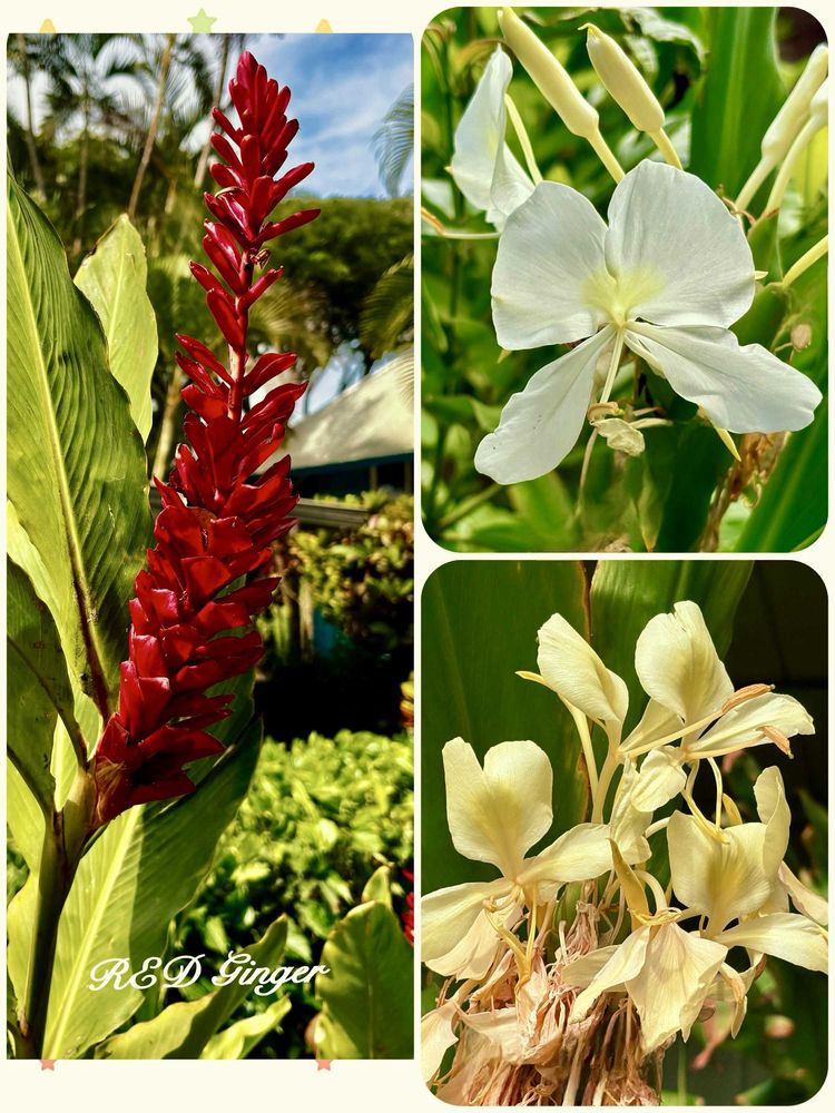 レッドジンジャーは、ハワイアンキルトのモチーフにもなっていて、見たかったお花です。♥️♥️♥️花数が多いですね。