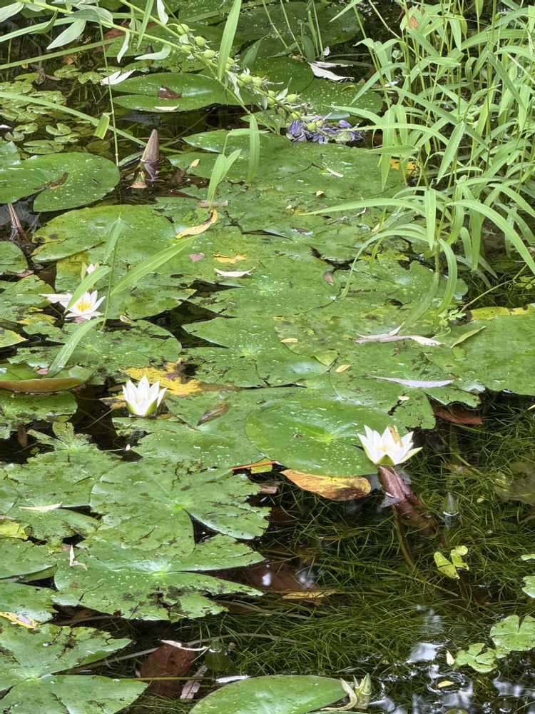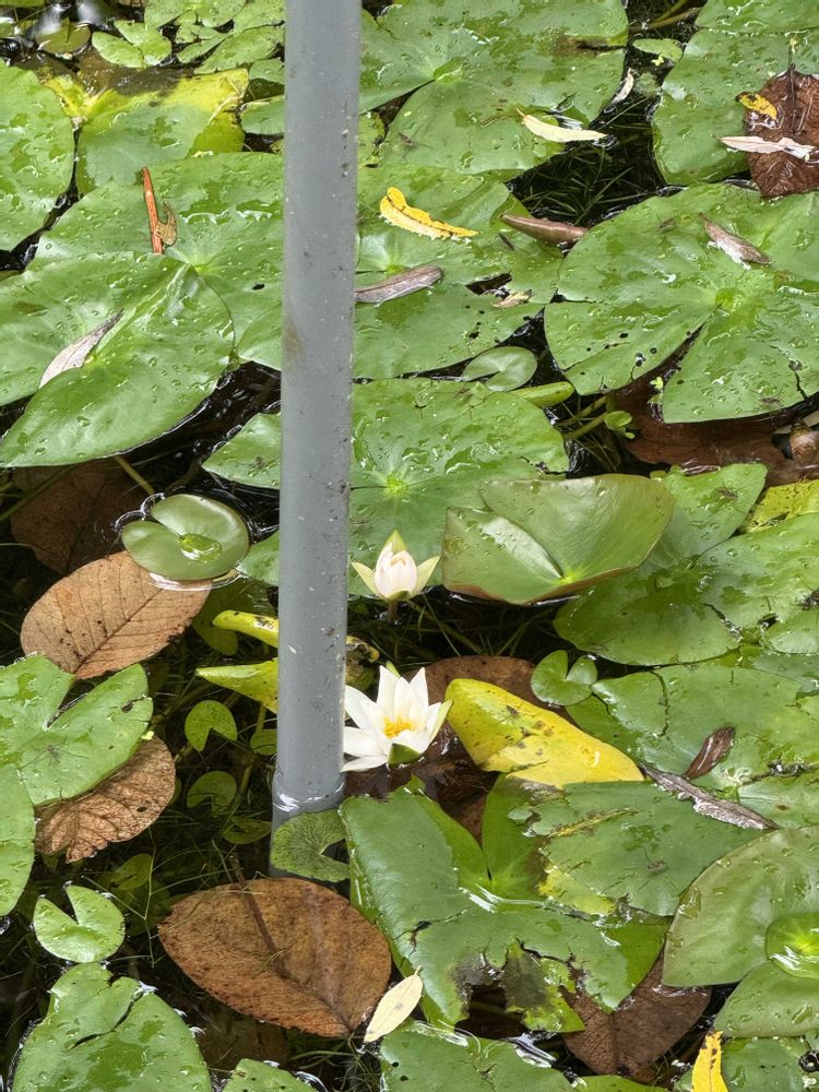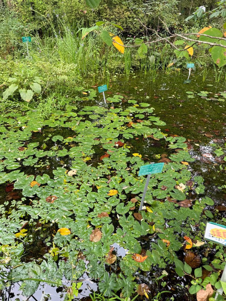日光植物園の池に咲いていたヒツジグサ、近くにはツリフネソウ群生、