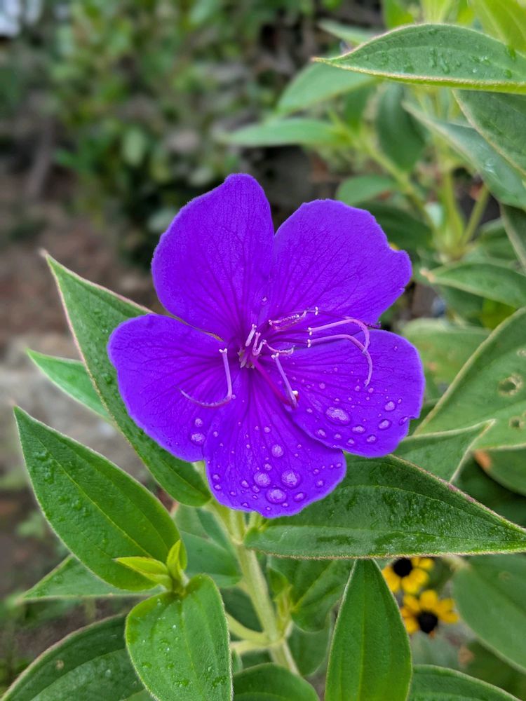 庭では長寿ノボタンや蕾のシオンが〜👏🥰🎶