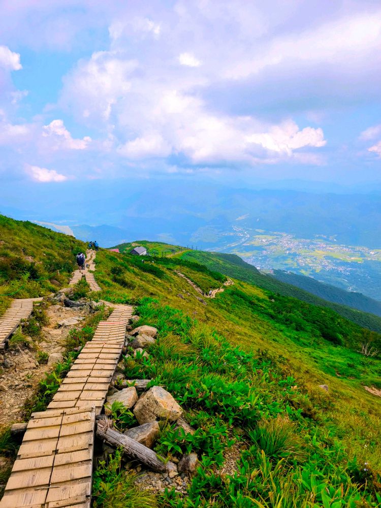八方池から山小屋の八方池山荘までの下山は白馬三山川に雲がかかり白馬三山も観れないこともあり行きに歩いた登山道コースではなく観光客も多く利用する歩きやすい木道コースが雲も少なく見晴らしが良かったのでそちらをを使いました😀