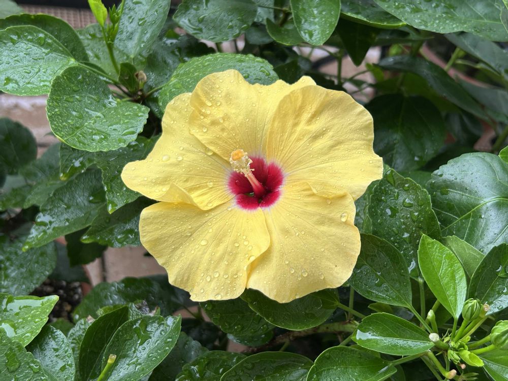 今日も黄色いハイビスカスが大きな花を咲かせています💛