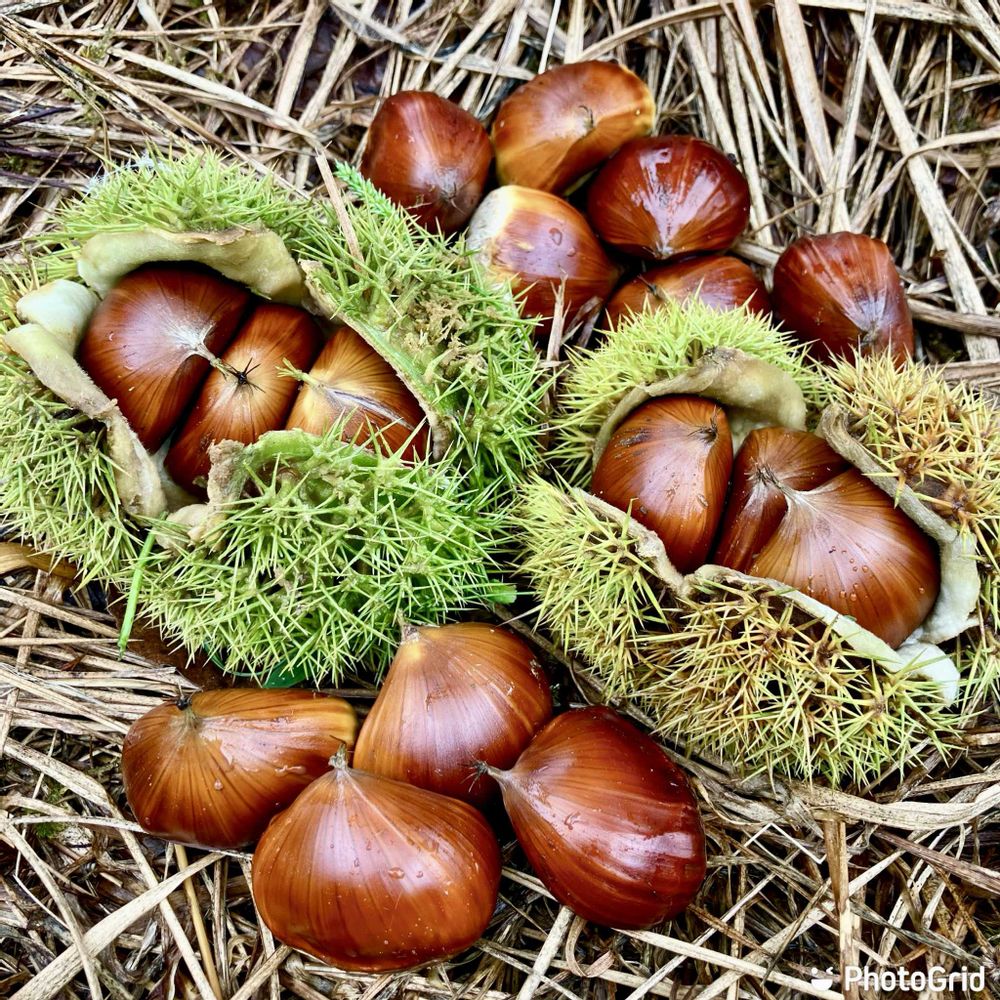3連休初日土曜☁️、朝の楽しみは栗拾い🌰🌰🌰✨。