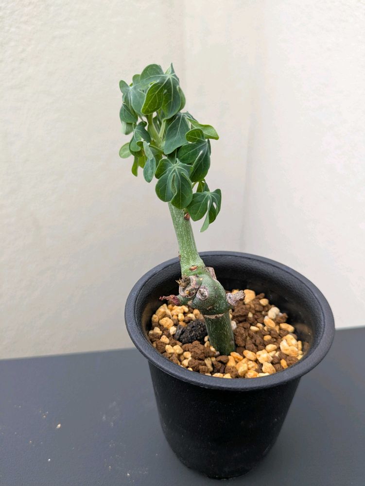 アデニア・グラウカを今年の2月に胴切りしましたが、胴切りした茎とその先端も根付いていますので気長に育てて行きたいと思っています。