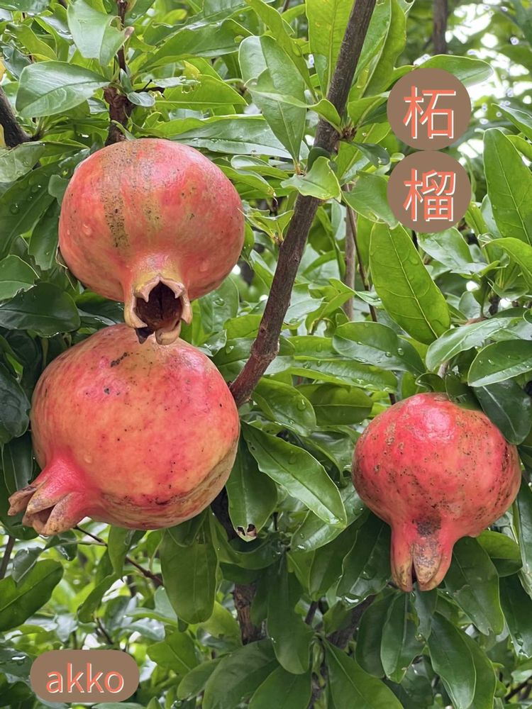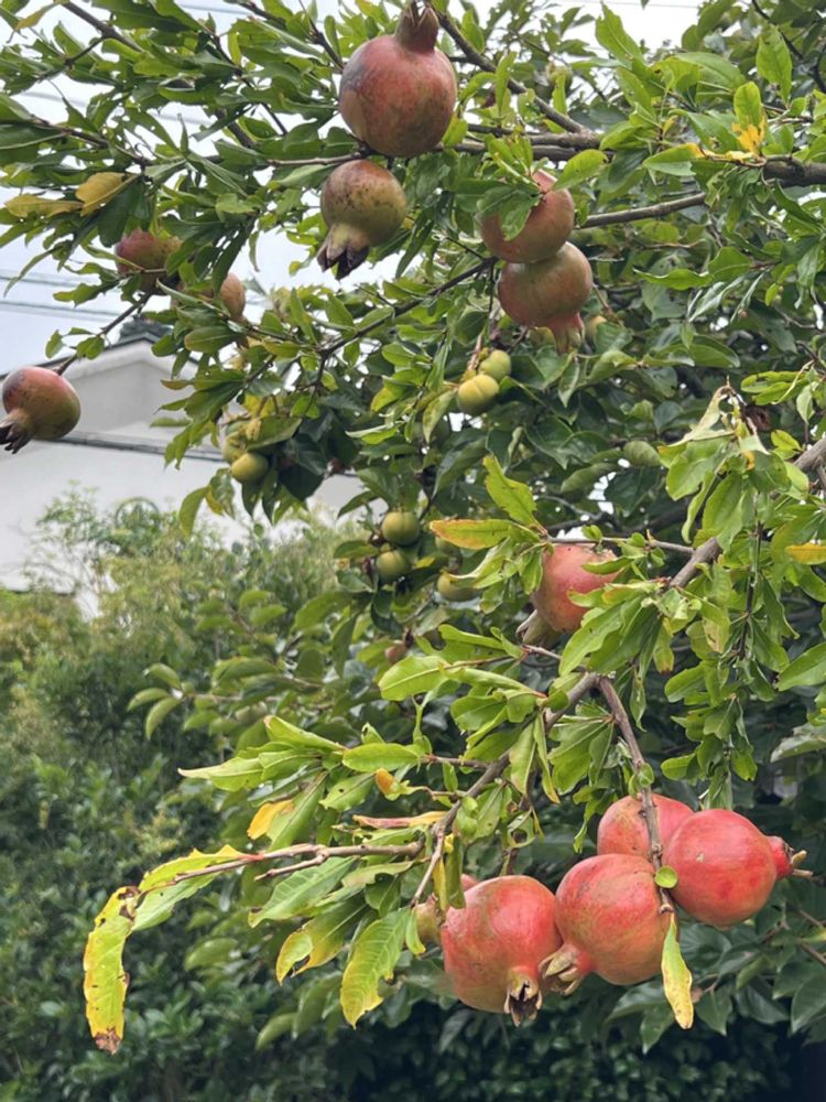 お向かいのお宅の柘榴(ざくろ)が熟してます❗️