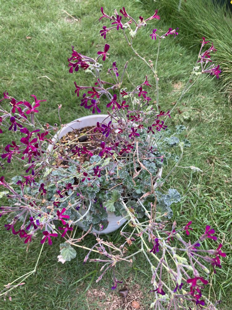 我が家にもペラルゴニウムシドイデス 花友さんに苗を頂いて育っていますが 鉢が小さくなったからなのか 茎か下向いたり横向いたりと大暴れ💦