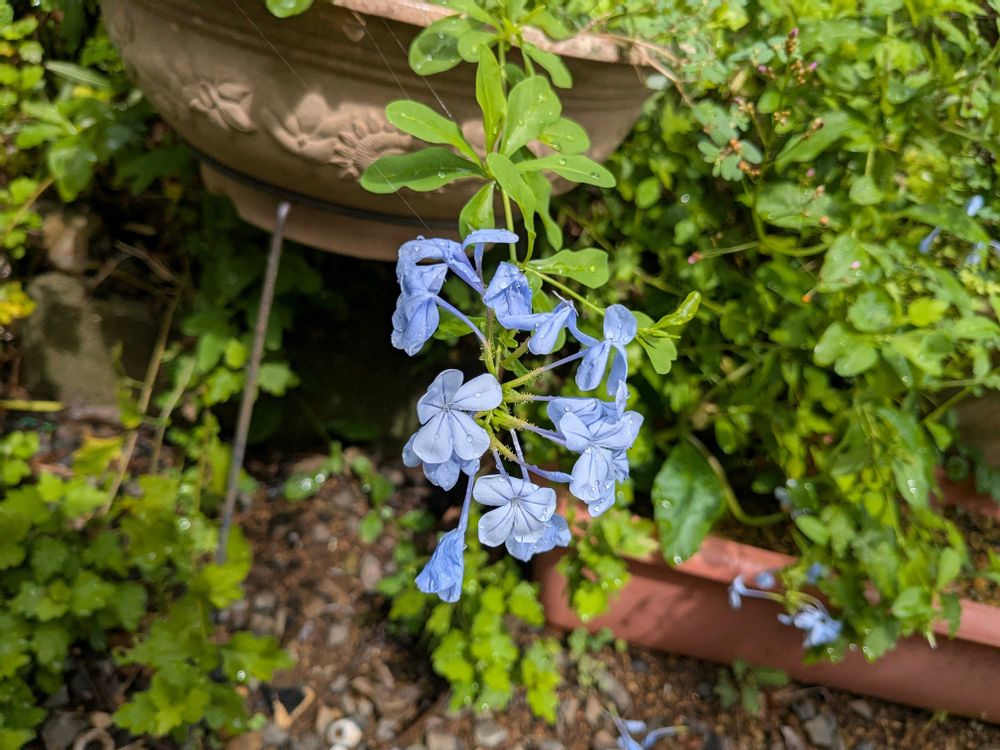あちこちに、伸びていく、ルリマツリ花は涼しい🙄👍