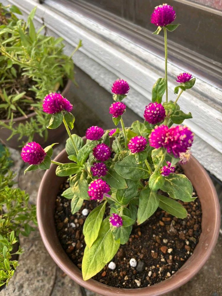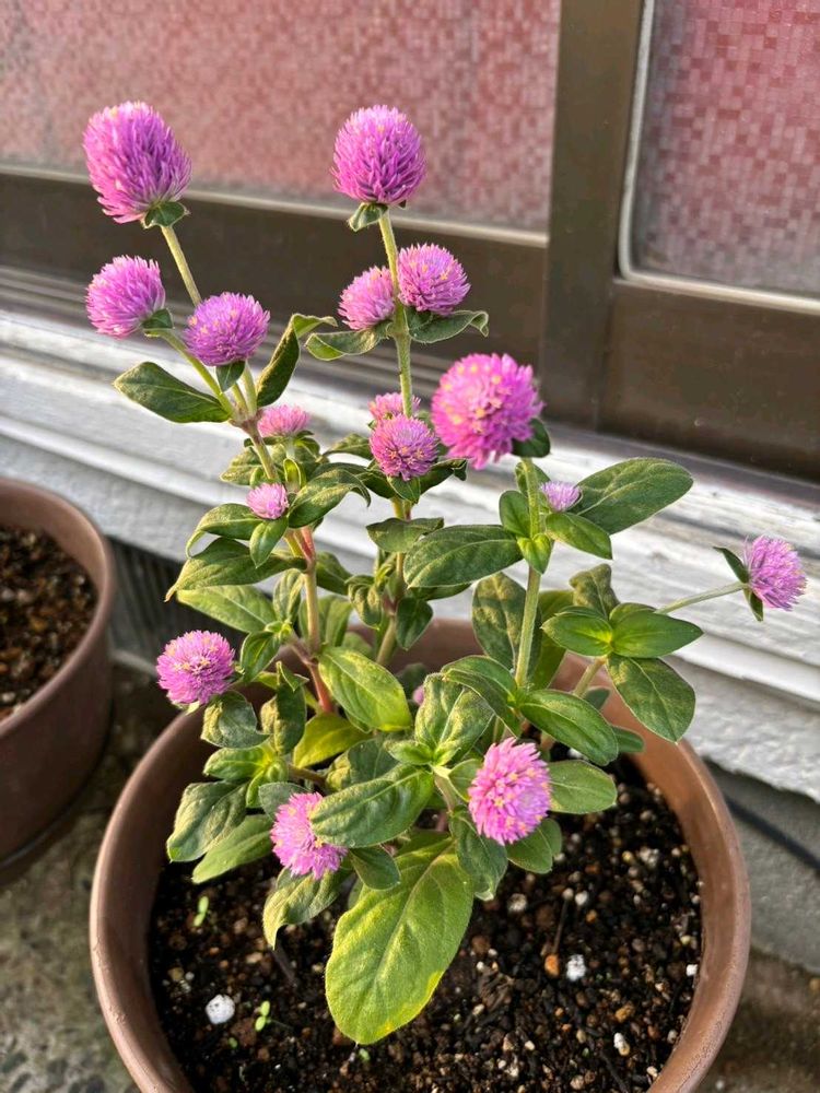 友達の庭に咲いている千日紅の写真2枚とコキアです。