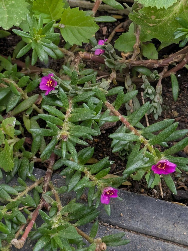 こぼれ種からマツバボタンが出たのかと思っていましたが咲いてみると花の直径6mmほど ヒメマツバボタンでした