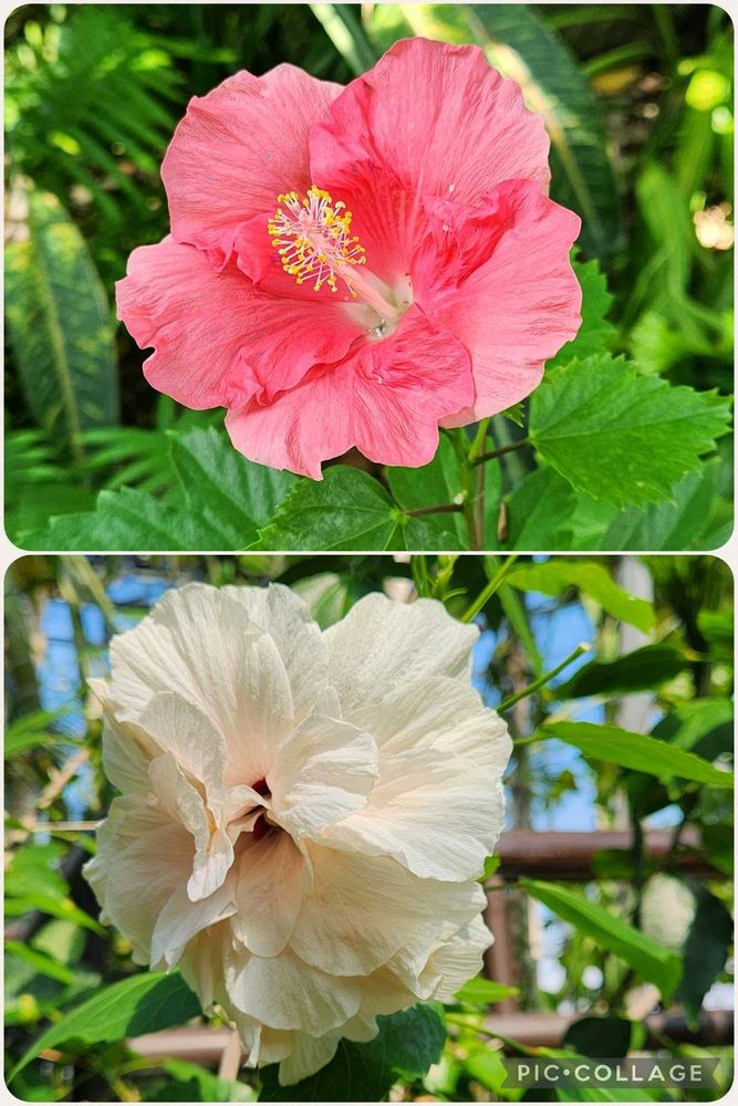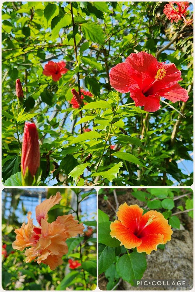 いろいろなハイビスカスが美しさを競っていて素敵💕