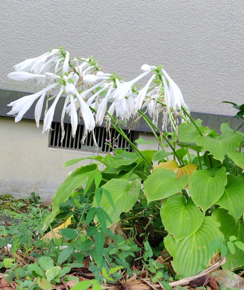 近所のお宅で綺麗に咲いていた真っ白なギボウシのお花💚💮💚