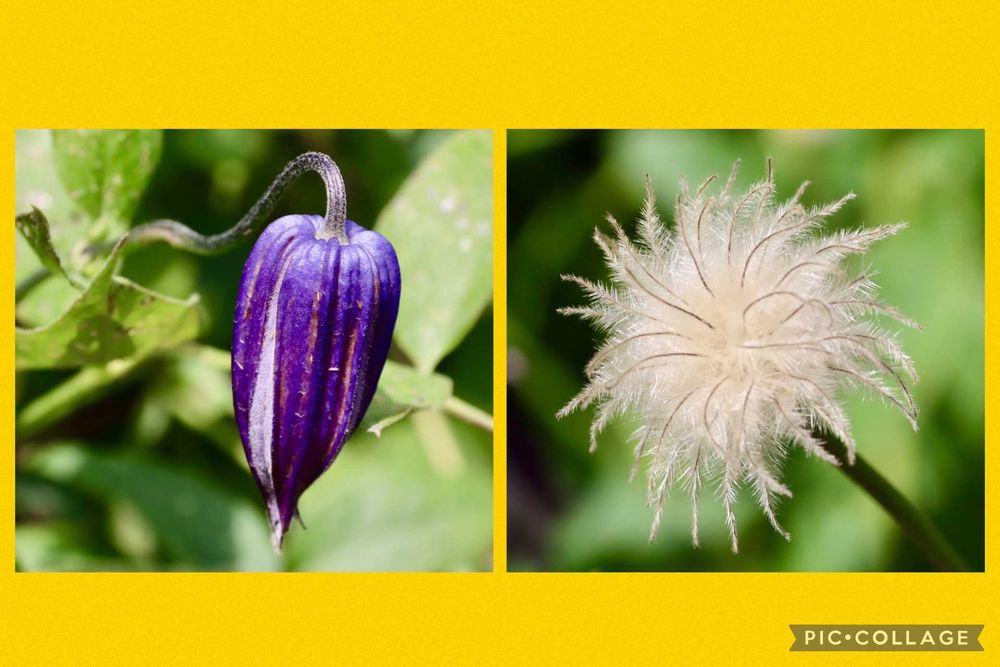 2枚目は、鐘型クレマチスと花後の綿毛。