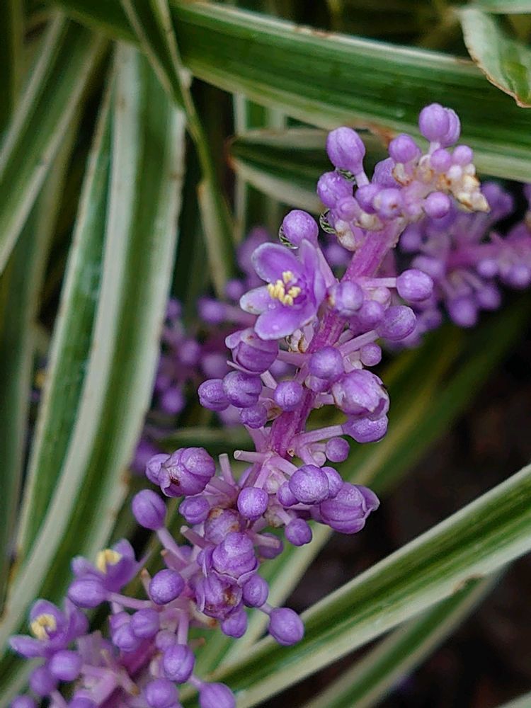 1️⃣2️⃣3️⃣ヤブラン💜🟣丸い蕾が開いていました😊毎朝チェックしてたのよ😁✌