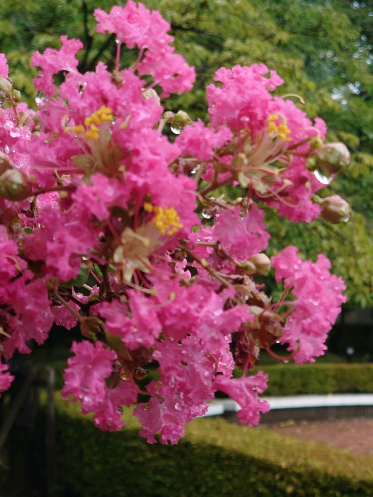 5️⃣サルスベリも雨に濡れてしっとりしていました🩷💧😉