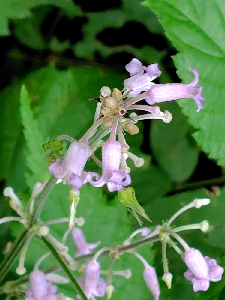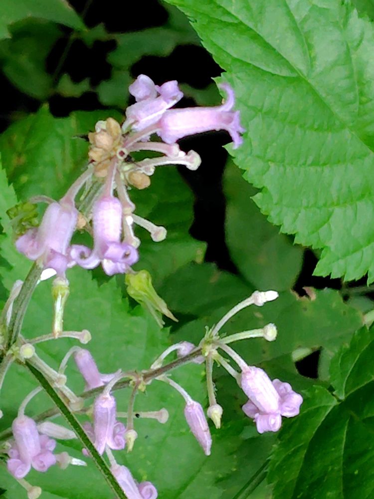 茎の先端から集散状の花序を出し、淡紫色の花を多数付ける。