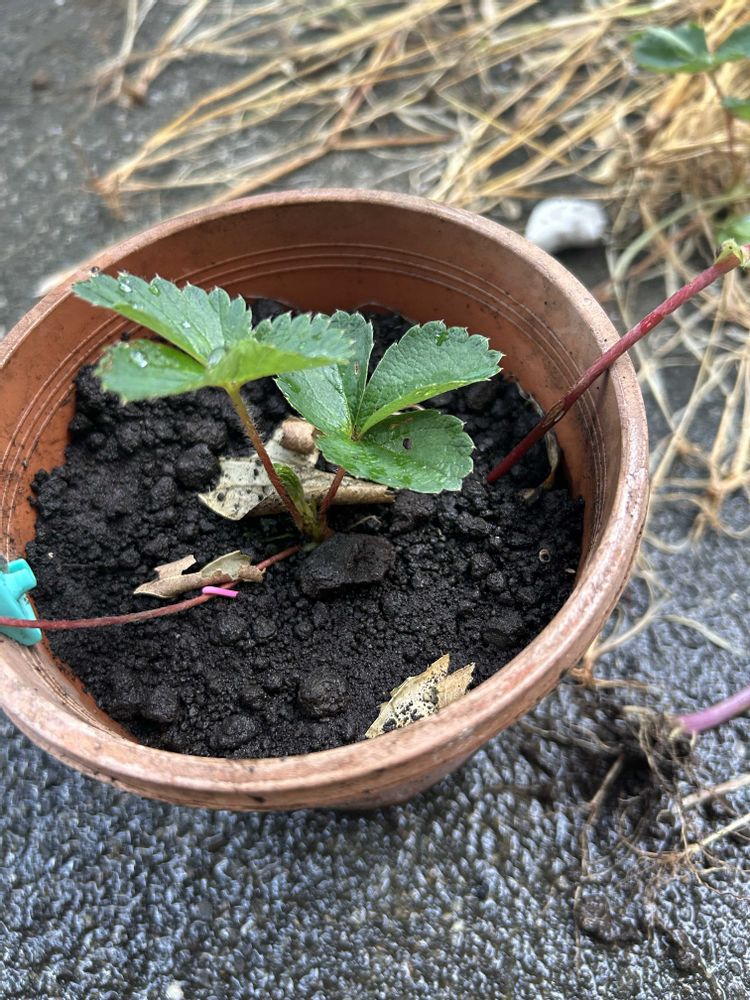 2023/12季節外れの小さなイチゴ🍓が実った。食べるには小さい。🍓から種を取って蒔いて育てた記録です。 ⚠️私がいちご🍓の種と思っていたツブツブは種ではなく、その中に種が入っていると知りビックリ。追記してます🙏。