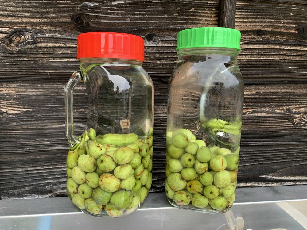 サルナシの果実酒をググッてたら、完熟前が雑味が出なくて良いとかで、慌てて収穫しました😅💦触ってたら柔らかいのもあり、ギリギリセーフか❓😅あと少し収穫して3.6kg収穫❗️ばあちゃんと違って僕は分け合う主義なので、900gづつに分けて4軒分😀梅仕事ならぬサルナシ仕事でヘタやら掃除😀途中カールくん🐕のオシッコ💩に邪魔されながらやっと瓶に投入しました😀瓶の半分に入れると2瓶できました😀ちなみに梅酒はあの甘さが苦手なので、氷砂糖無しで作られてる方もおられるようなのでホワイトリカーのみです😀さあて旨くできるかなぁ❓😀