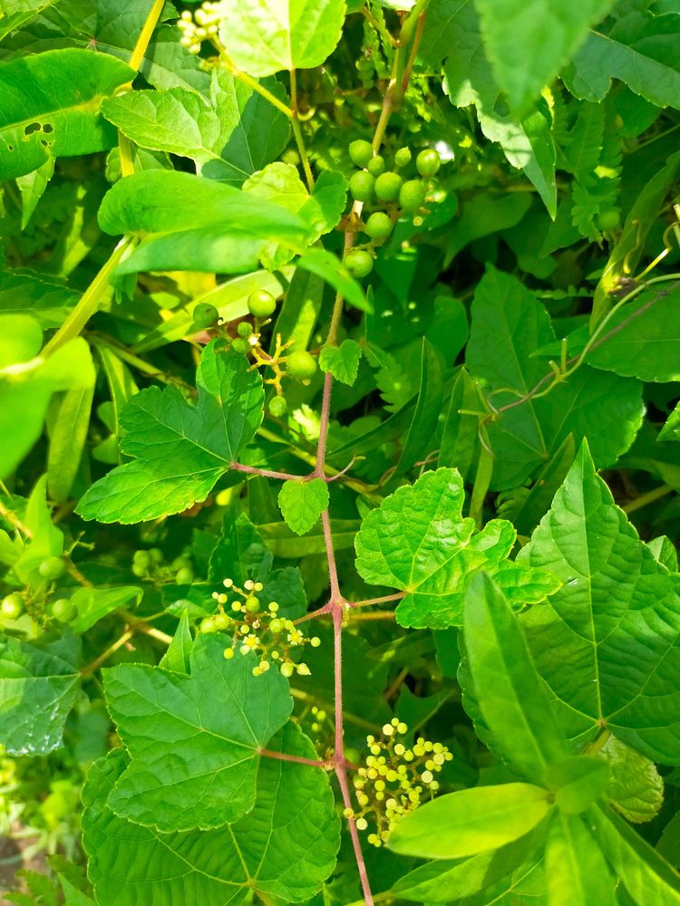 実も大きくなり、葉っぱも可愛いです🍇
