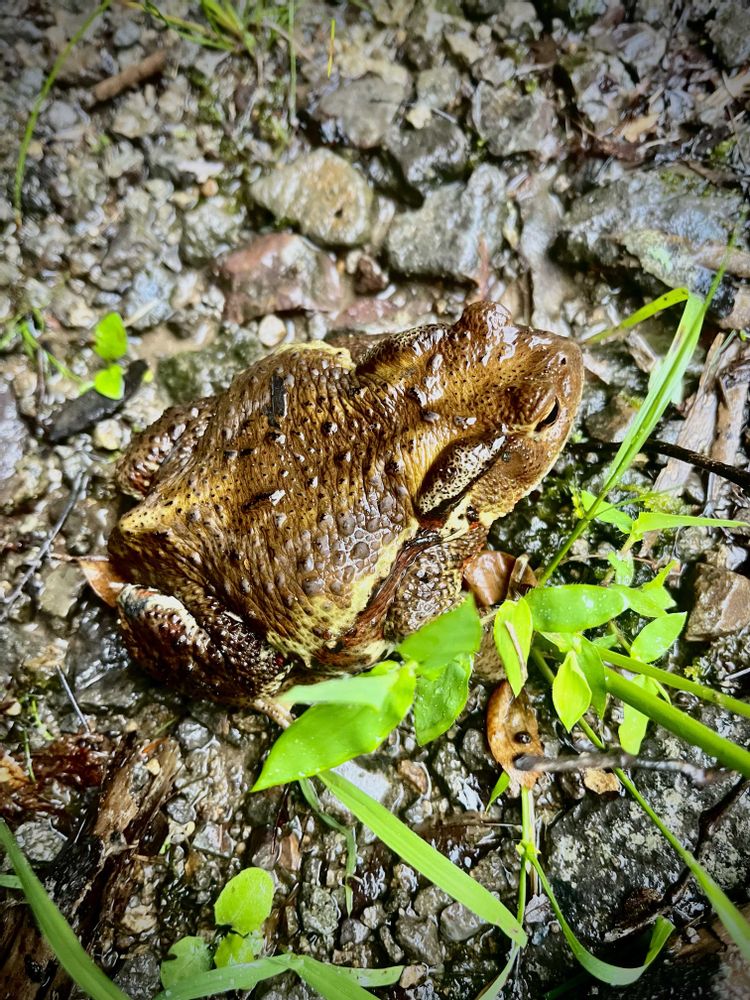 4枚目は、バーベキュー当日、コンロのそばに突然現れたジムグリというヘビです。5枚目は下見の際に出会した、ヒキガエル君です!😂