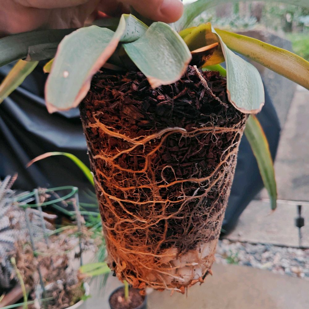 ぐずらない様に根っこはいじらず、ベラボンと富士砂ブレンドで鉢増しです。