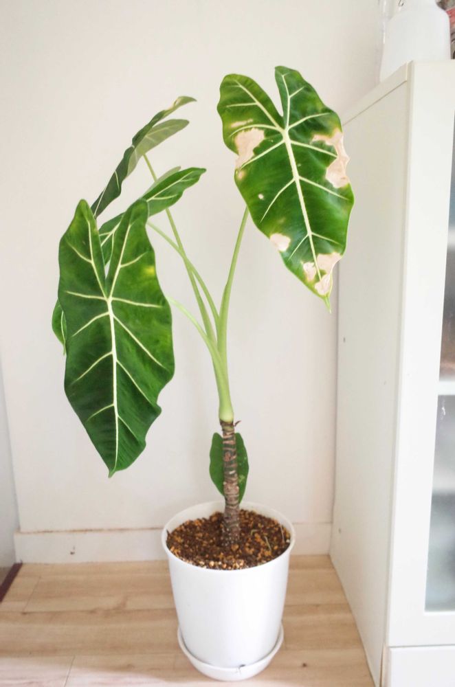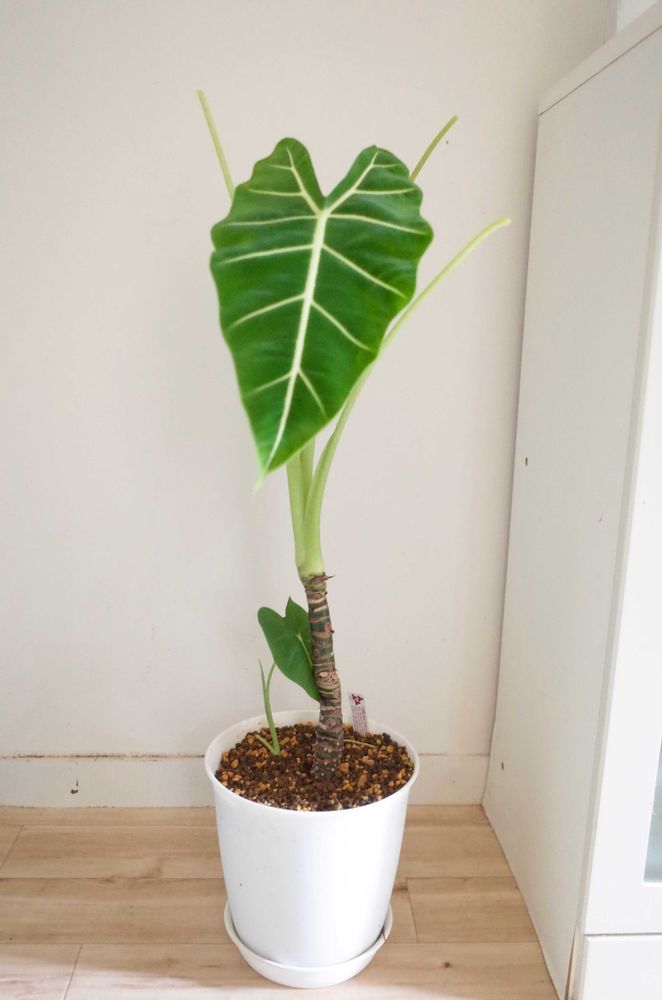 今年初めてアロカシアが葉焼けしました🫨それだけ暑いんだと思います…🌞熱帯植物園芸家の杉山さんが9月のうちに葉を切って、早めにコンパクトサイズで育てると、部屋にしまうとき楽だとYouTubeで仰ってたので試しにやってみました😄