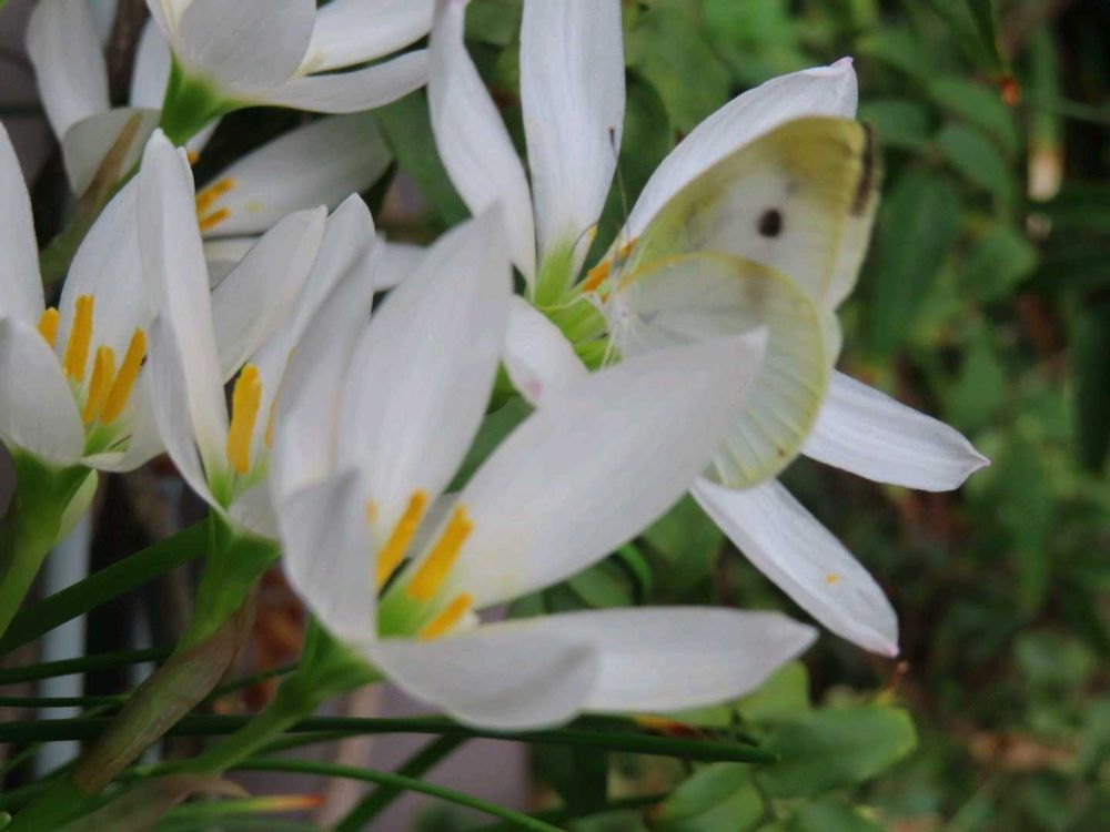 ベランダの「タマスダレ」のお花にモンシロチョウが吸蜜に来ていました🌿🤍🦋