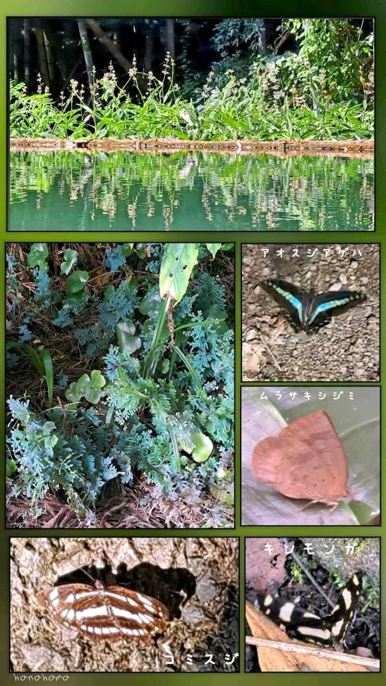 雑木林の中に大きな水槽がありそこには沢山のチョウが飛び回っていました。