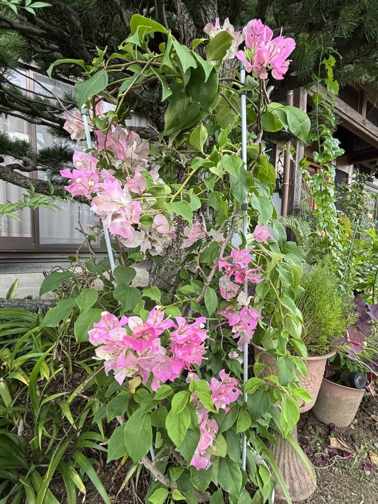 ブーゲンビリアは4年前の母の日に私が母に贈ったものですが棘があるのでお手入れは私の仕事です😆