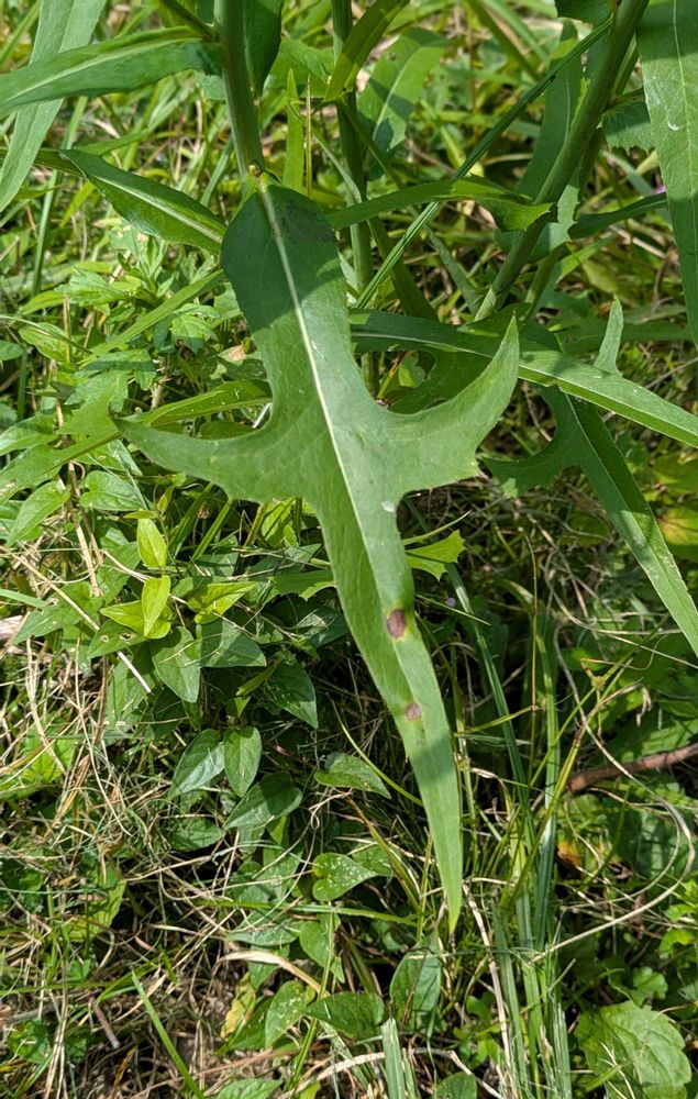 上部の葉と違って下部の葉は大きく切れ込んでいて、これが切れ込まないのはホソバアキノノゲシと呼ばれるタイプ🟩