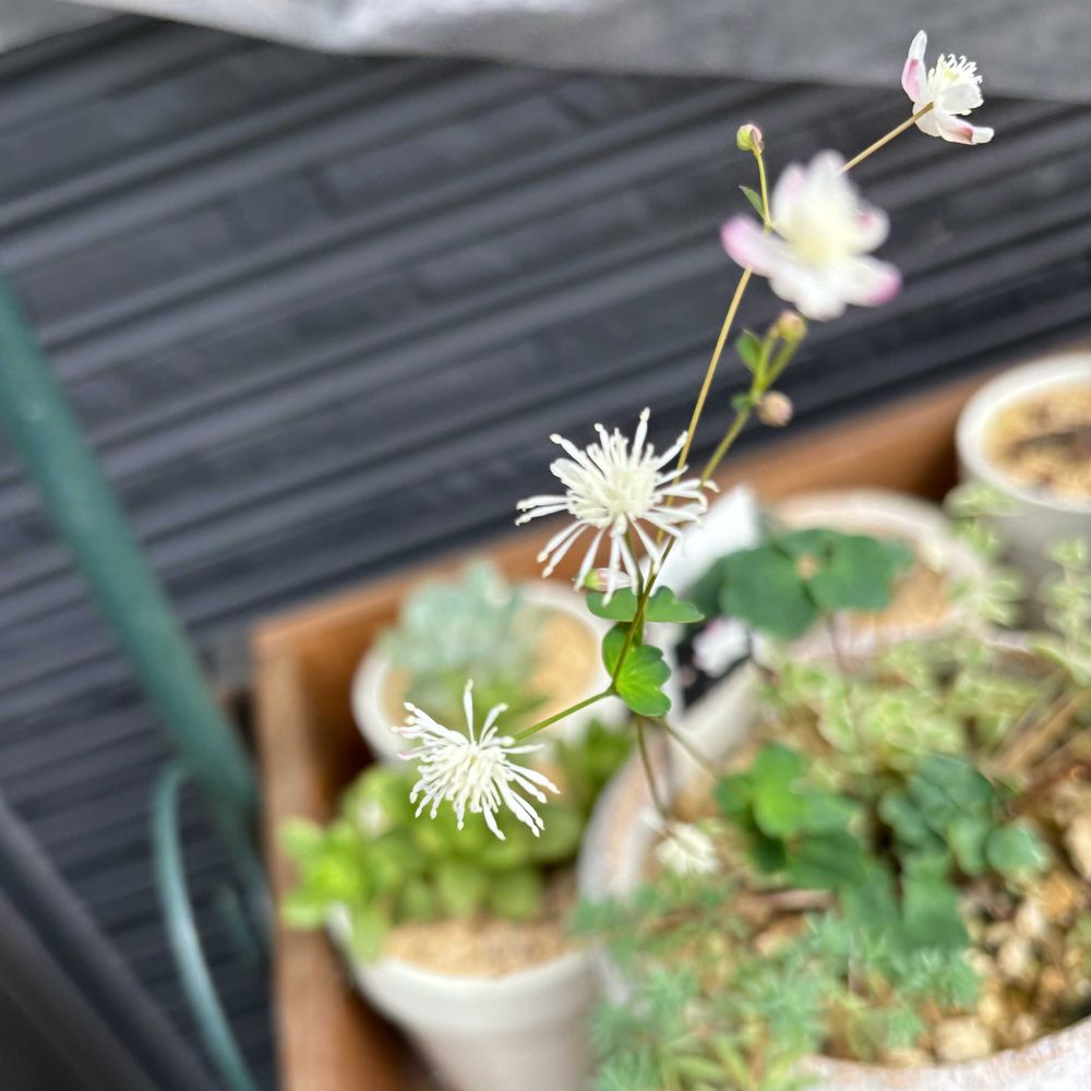 諦めきれず細く枯れ枝2本だけになったのそのまま水やりしてたら葉っぱがまた出てきて咲いてくれました〜👏