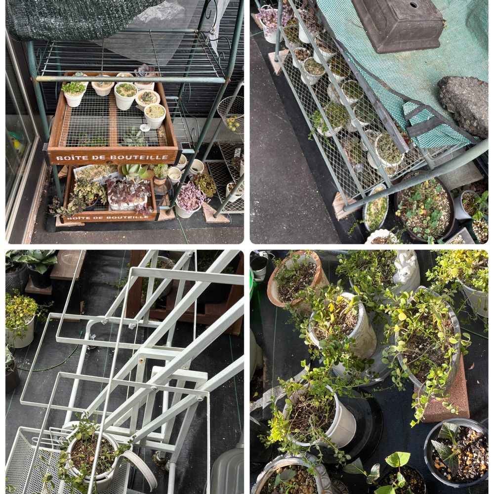↖️↗️多肉ラック、上の段は避難させてI段目にシートなどを被せ
