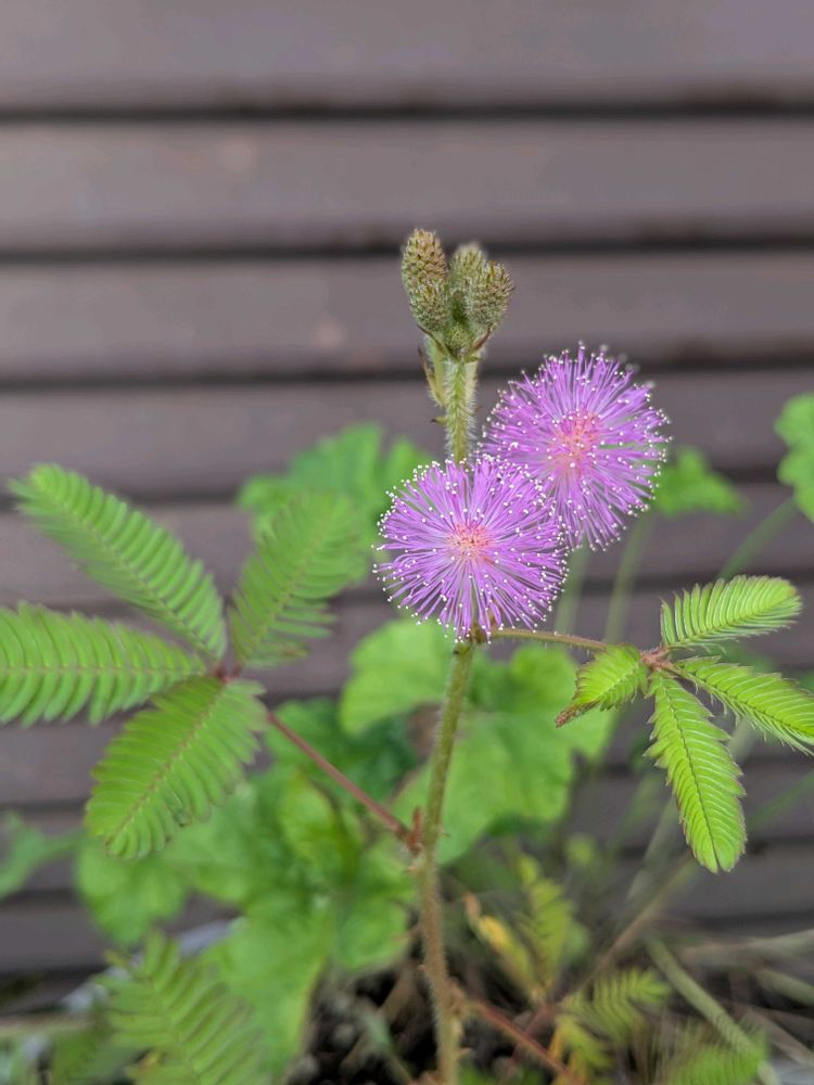 あら!可愛い可愛いオジギ草に花が咲いている‼️