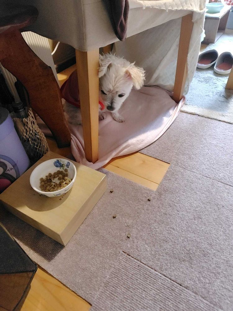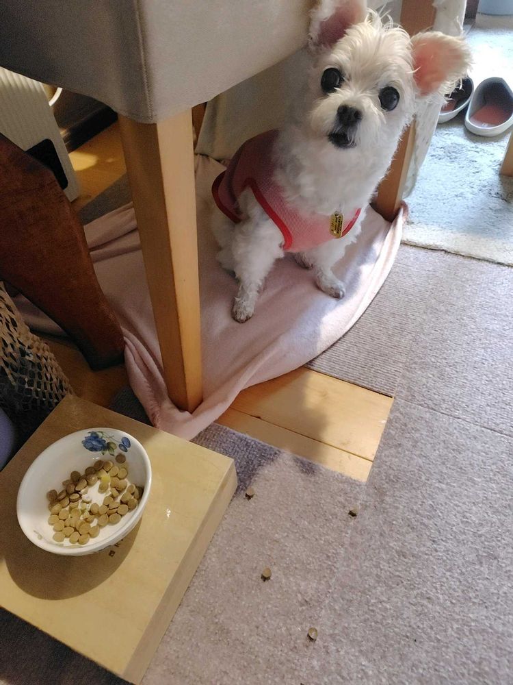 13歳になっても食欲衰えず、最近は完食のご褒美のつもりであげていた🥚の黄身欲しさに、最初から手を付けない手段に…!!🤣
