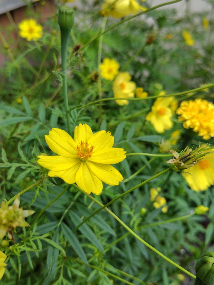元気色の🟡のコスモスたくさん咲いて嬉しいです😍