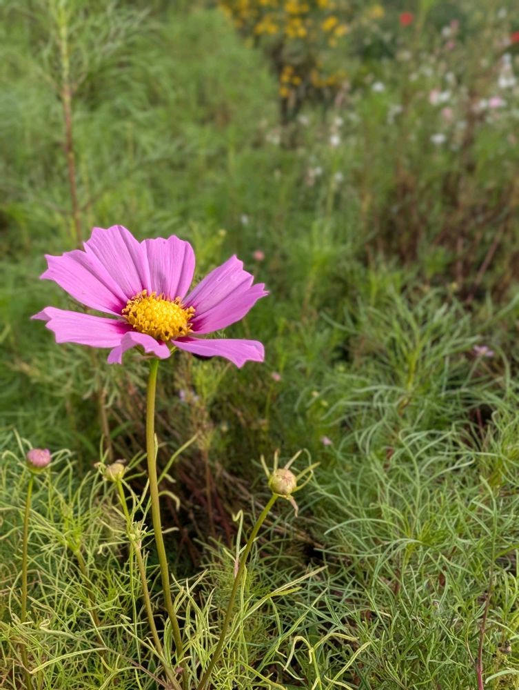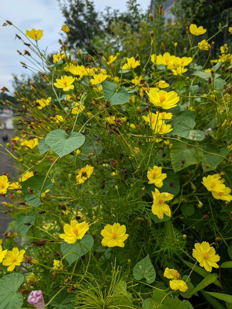 友達のとこのコスモスは夏枯れしたのが復活して小さく我が家のは大きくなりこぼれ種の朝顔に巻きつかれながら咲いてます🩷💛